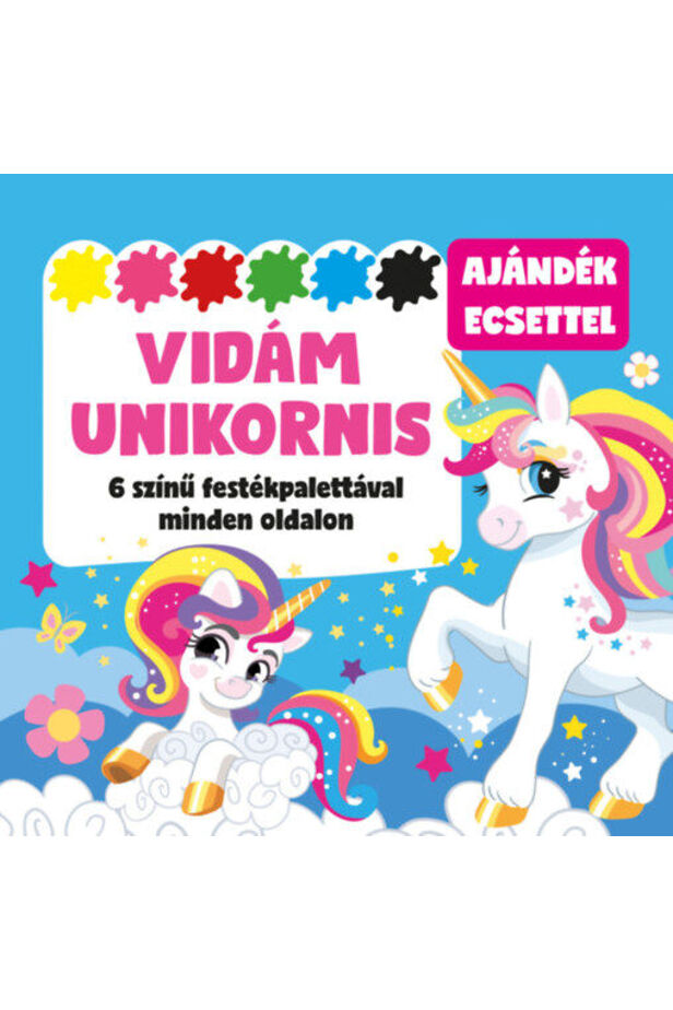 Merülj el a szivárványos unikornisok varázslatos világában! Minden oldalon egy új, festésre váró jelenet vár rád, saját 6 színű festékpalettával - az alkotáshoz pedig ajándék ecsetet is találsz a csomagban. A Vidám unikornis tökéletes választás kreatív gyerekeknek, akik imádják a színeket, a csillogást és az unikornisokat!